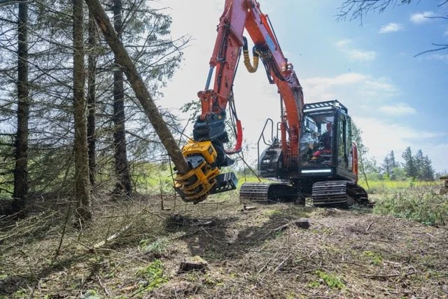 Premium Finnish-engineered tree shears for excavators, loaders, and skid steers — distributed across Canada by Forotek Manufacturing Ltd.